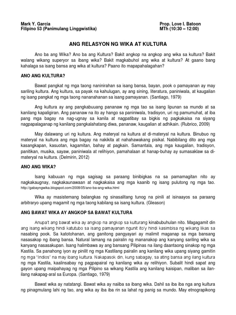Ang Relasyon Ng Wika At Kultura