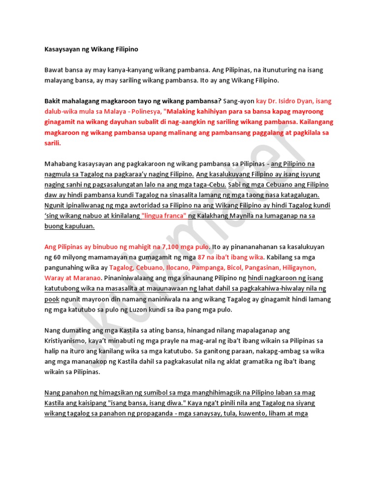 Wikang Filipino Ugat Ng Pagka Pilipino