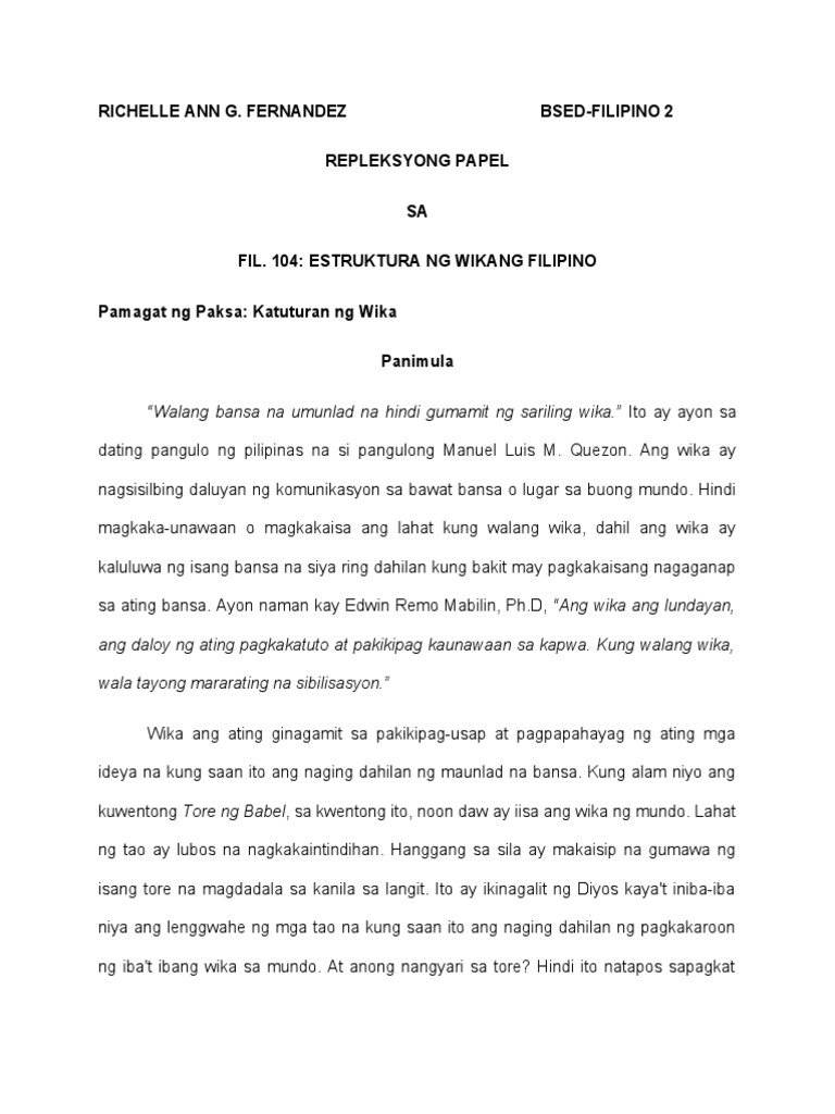 Fernandez R Repleksyong Papel Katuturan Ng Wika