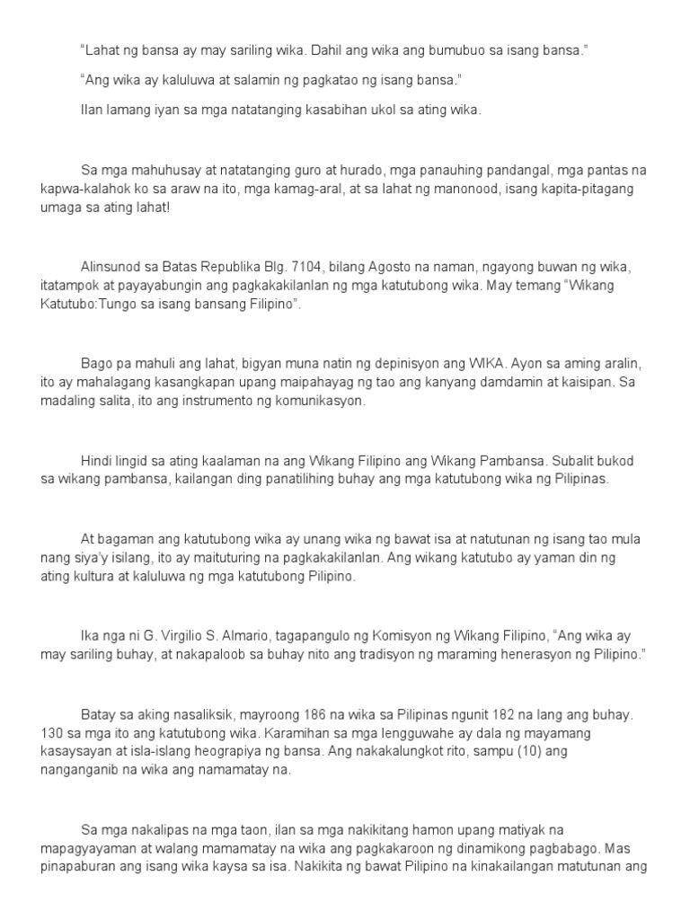 Pdf Kahalagahan Ng Wika Sa Kultura T Pag Unlad Ng Ekonomiya Ng Bansa Funtimeswith Myreene Academia Edu