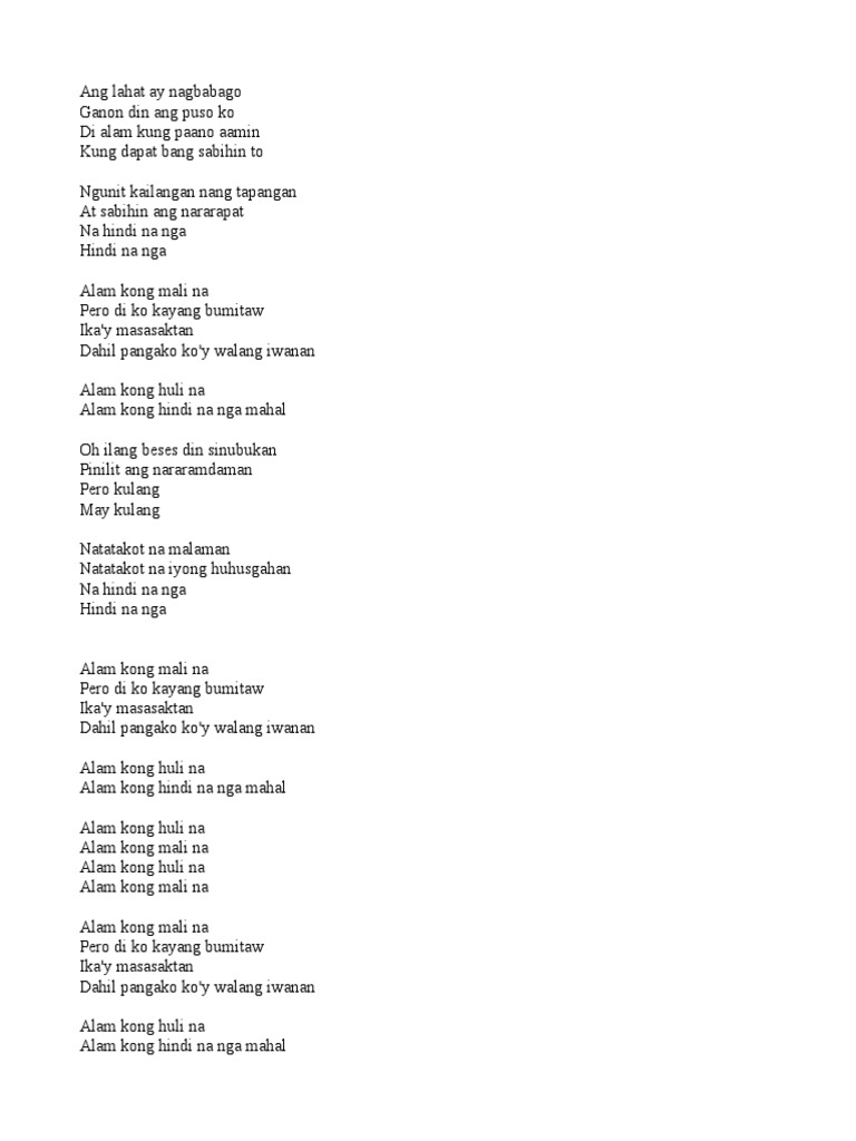 Lyrics Ang Lahat Ay Nagbabago Ganun Din Ang Puso Ko Facebook