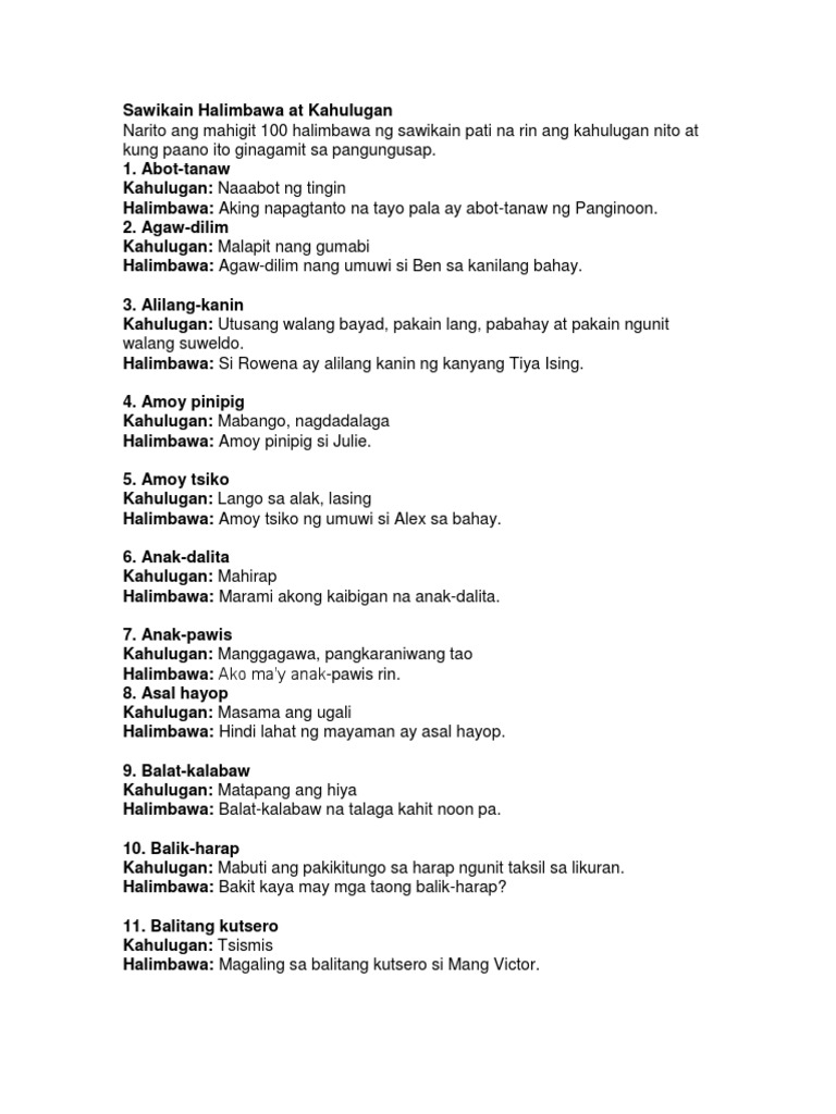 Sawikain Halimbawa At Kahulugan