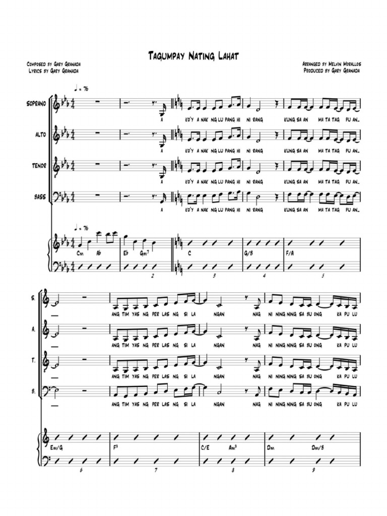 Tagumpay Nating Lahat Satb Vocal Music Choral Music